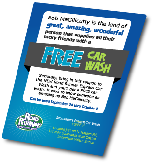 The “coupon” not only gives them a FREE wash, but it gives credit to you as the “great, amazing, wonderful” person that you are.